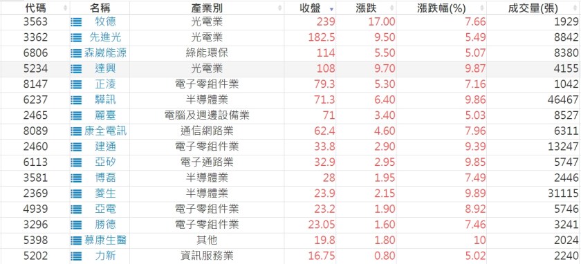 2024-0123股價創20日新高爆量上漲股 2024-01-23 股狗網小編 選股條件 發表留言 利用股狗選股的選股條件可以【挑選突破20日新高,爆量上漲起漲點股票】 1.股狗選股 https://www.stockdog.com.tw 2.選股條件: a.收盤價創20日新高 b.當日漲幅 > 2% C.成交量大於5日均量2倍 免責宣言 本網站文章所提供資訊僅供參考,並無任何推介買賣之意,投資人應自行承擔交易風險。 分享此文: 分享到 X(在新視窗中開啟) X 分享到 Facebook(在新視窗中開啟) Facebook 喜歡 正在載入...