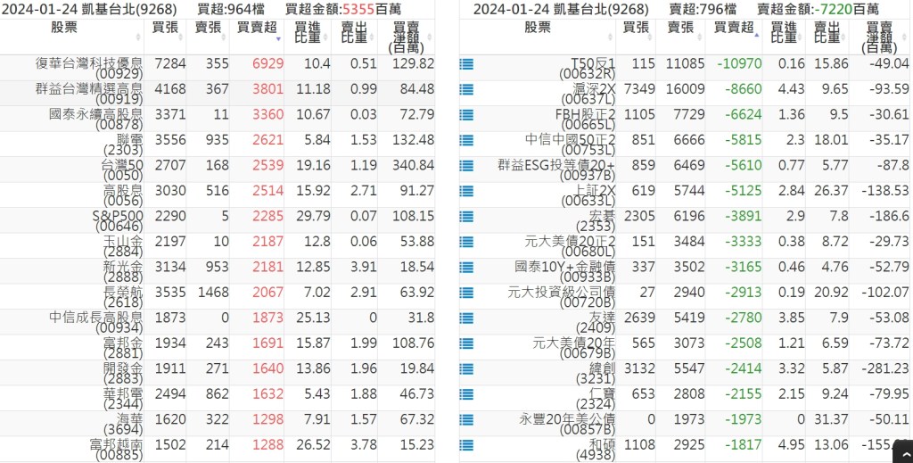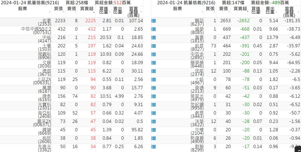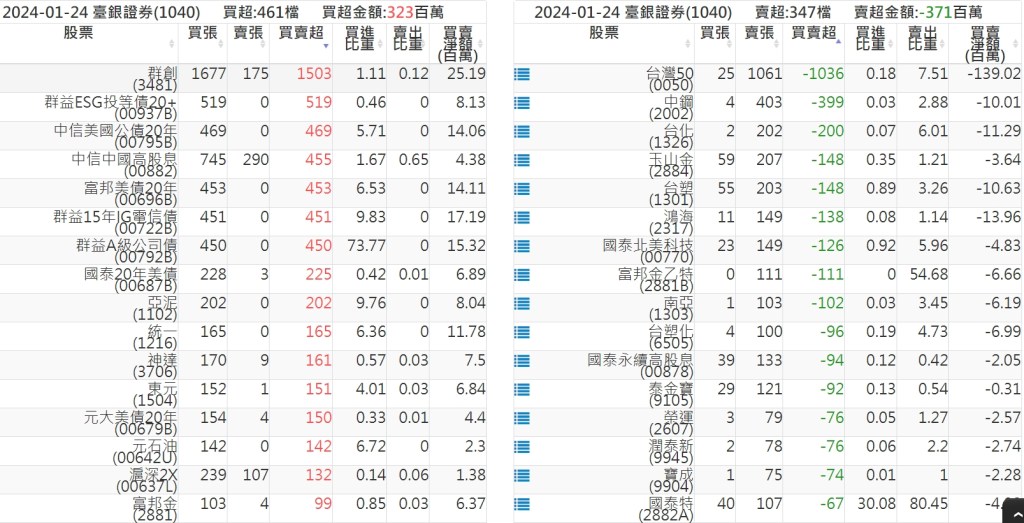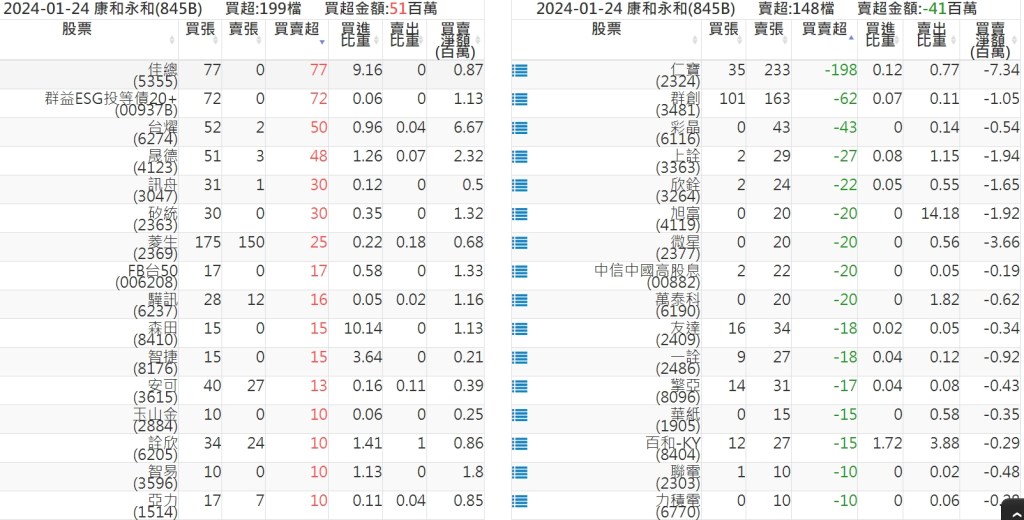 2024-0124關鍵券商買賣超 2024-01-24 股狗網小編 籌碼面每日資訊 發表留言 關鍵券商買賣超: 臺銀證券(1040): 台灣摩根士丹利(1470): 凱基台北(9268): 凱基信義(9216): 元大土城永寧(9875): 康和永和(845B) : 富邦建國(9658): 免責宣言 本網站文章所提供資訊僅供參考,並無任何推介買賣之意,投資人應自行承擔交易風險。 分享此文: 分享到 X(在新視窗中開啟) X 分享到 Facebook(在新視窗中開啟) Facebook 喜歡 正在載入...