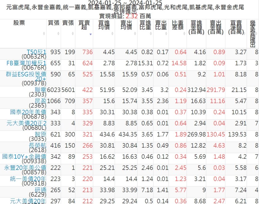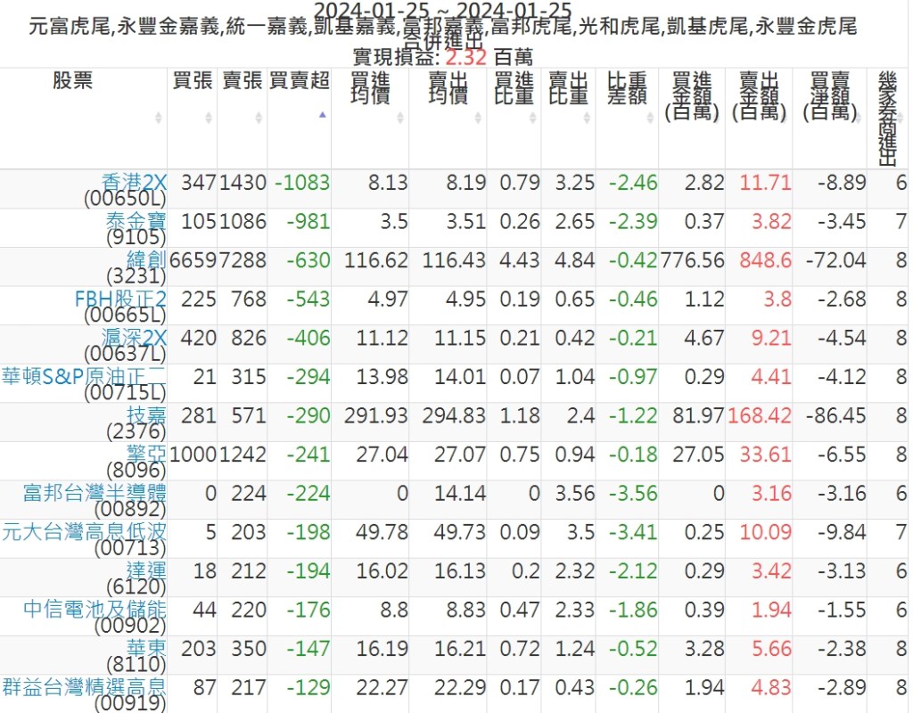 2024-0125主力買賣超個股 2024-01-25 股狗網小編 籌碼面每日資訊 發表留言 可參考下文 『如何查詢當沖、隔日沖分公司券商買賣』 主力當沖券商: 『元富虎尾』,『永豐金嘉義』,『統一嘉義』,『凱基嘉義』,『富邦嘉義』,『富邦虎尾』,『光和虎尾』,『凱基虎尾』,『永豐金虎尾』。 『當沖標的』 『買超股票』 『賣超股票』 免責宣言 本網站文章所提供資訊僅供參考,並無任何推介買賣之意,投資人應自行承擔交易風險。 分享此文: 分享到 X(在新視窗中開啟) X 分享到 Facebook(在新視窗中開啟) Facebook 喜歡 正在載入...