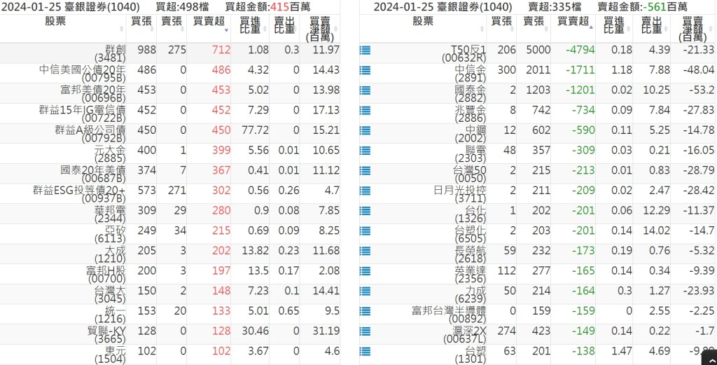 2024-0125關鍵券商買賣超 2024-01-25 股狗網小編 籌碼面每日資訊 發表留言 關鍵券商買賣超: 臺銀證券(1040): 台灣摩根士丹利(1470): 凱基台北(9268): 凱基信義(9216): 元大土城永寧(9875): 康和永和(845B) : 富邦建國(9658): 免責宣言 本網站文章所提供資訊僅供參考,並無任何推介買賣之意,投資人應自行承擔交易風險。 分享此文: 分享到 X(在新視窗中開啟) X 分享到 Facebook(在新視窗中開啟) Facebook 喜歡 正在載入...