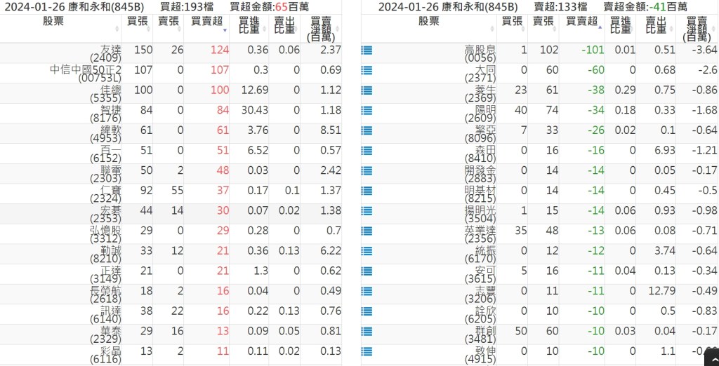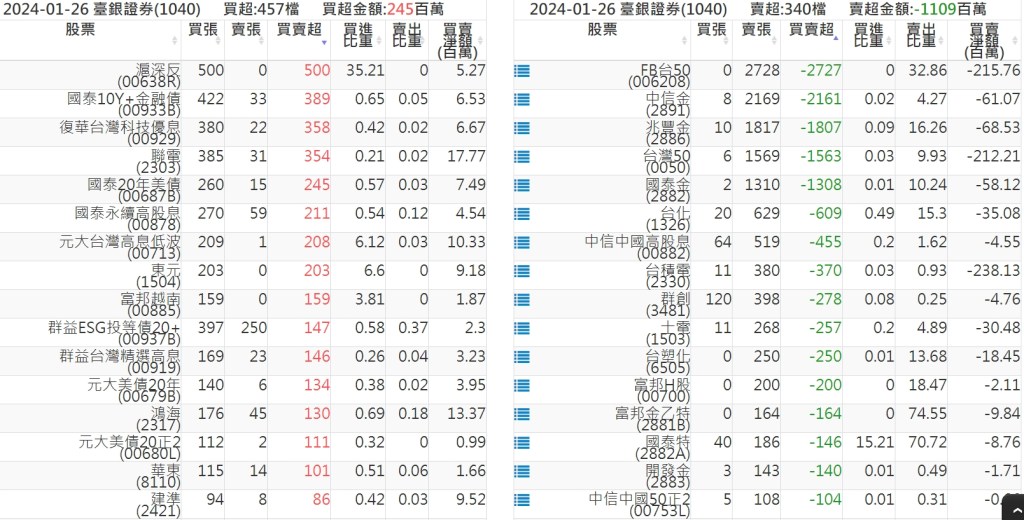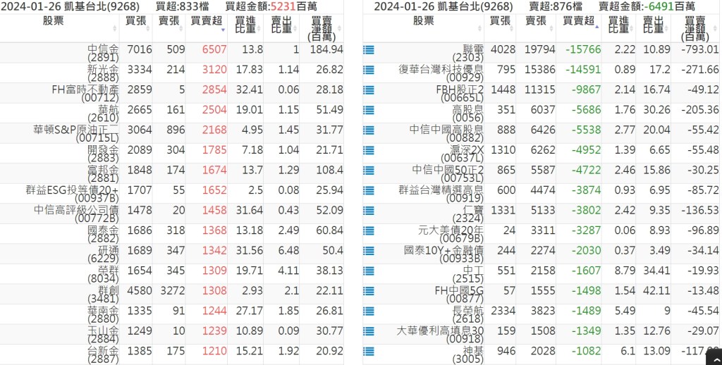 2024-0126關鍵券商買賣超 2024-01-27 股狗網小編 籌碼面每日資訊 發表留言 關鍵券商買賣超: 臺銀證券(1040): 台灣摩根士丹利(1470): 凱基台北(9268): 凱基信義(9216): 元大土城永寧(9875): 康和永和(845B) : 富邦建國(9658): 免責宣言 本網站文章所提供資訊僅供參考,並無任何推介買賣之意,投資人應自行承擔交易風險。 分享此文: 分享到 X(在新視窗中開啟) X 分享到 Facebook(在新視窗中開啟) Facebook 喜歡 正在載入...