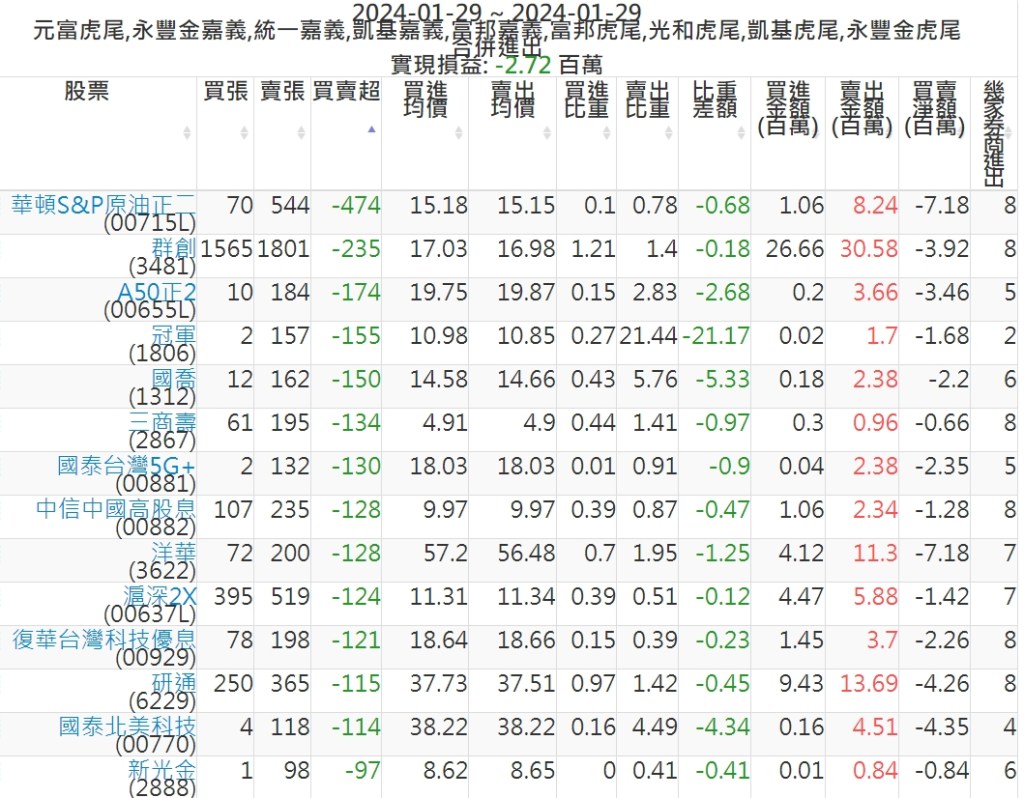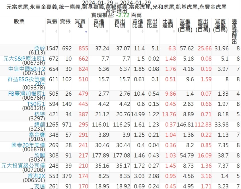 2024-0129主力買賣超個股 2024-01-29 股狗網小編 籌碼面每日資訊 發表留言 可參考下文 『如何查詢當沖、隔日沖分公司券商買賣』 主力當沖券商: 『元富虎尾』,『永豐金嘉義』,『統一嘉義』,『凱基嘉義』,『富邦嘉義』,『富邦虎尾』,『光和虎尾』,『凱基虎尾』,『永豐金虎尾』。 『當沖標的』 『買超股票』 『賣超股票』 免責宣言 本網站文章所提供資訊僅供參考,並無任何推介買賣之意,投資人應自行承擔交易風險。 分享此文: 分享到 X(在新視窗中開啟) X 分享到 Facebook(在新視窗中開啟) Facebook 喜歡 正在載入...