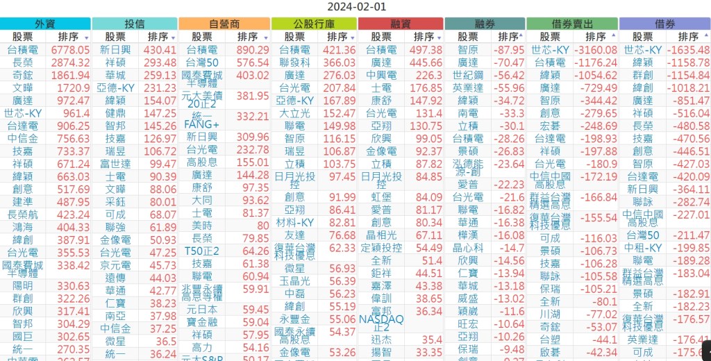 2024-0201上市【外資、投信】買賣超個股 2024-02-01 股狗網小編 投資誌-大盤 發表留言 上市:【外資、投信】買超(依金額) (單位:百萬) 上市:【外資、投信】賣超(依金額) (單位:百萬) 上市:【外資、投信】買超(依張數) (單位:張數) 上市:【外資、投信】賣超(依張數) (單位:張數) 免責宣言 本網站文章所提供資訊僅供參考,並無任何推介買賣之意,投資人應自行承擔交易風險。 分享此文: 分享到 X(在新視窗中開啟) X 分享到 Facebook(在新視窗中開啟) Facebook 喜歡 正在載入...