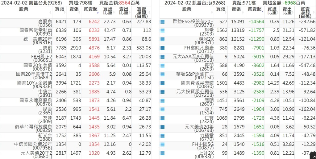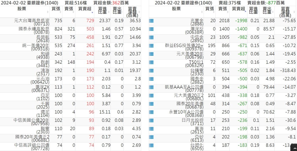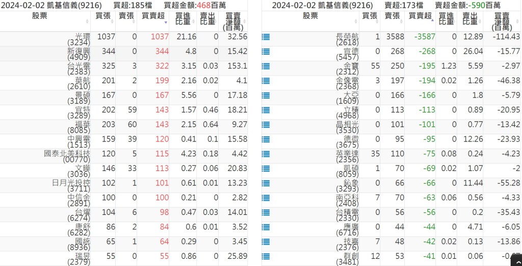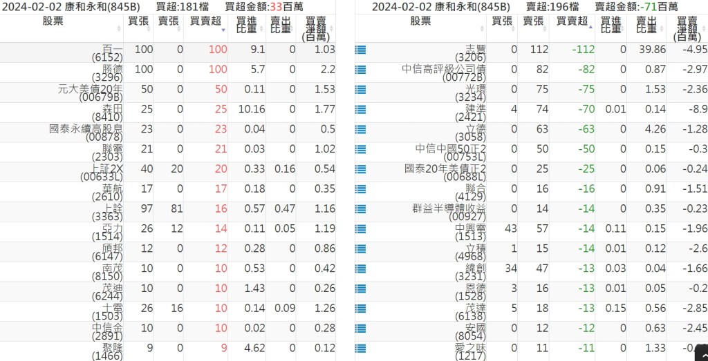 2024-0202關鍵券商買賣超 2024-02-03 股狗網小編 籌碼面每日資訊 發表留言 關鍵券商買賣超: 臺銀證券(1040): 台灣摩根士丹利(1470): 凱基台北(9268): 凱基信義(9216): 元大土城永寧(9875): 康和永和(845B) : 富邦建國(9658): 免責宣言 本網站文章所提供資訊僅供參考,並無任何推介買賣之意,投資人應自行承擔交易風險。 分享此文: 按一下即可分享至 X(在新視窗中開啟) X 按一下以分享至 Facebook(在新視窗中開啟) Facebook 喜歡 正在載入...