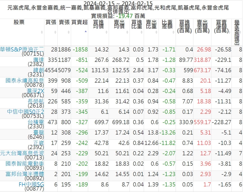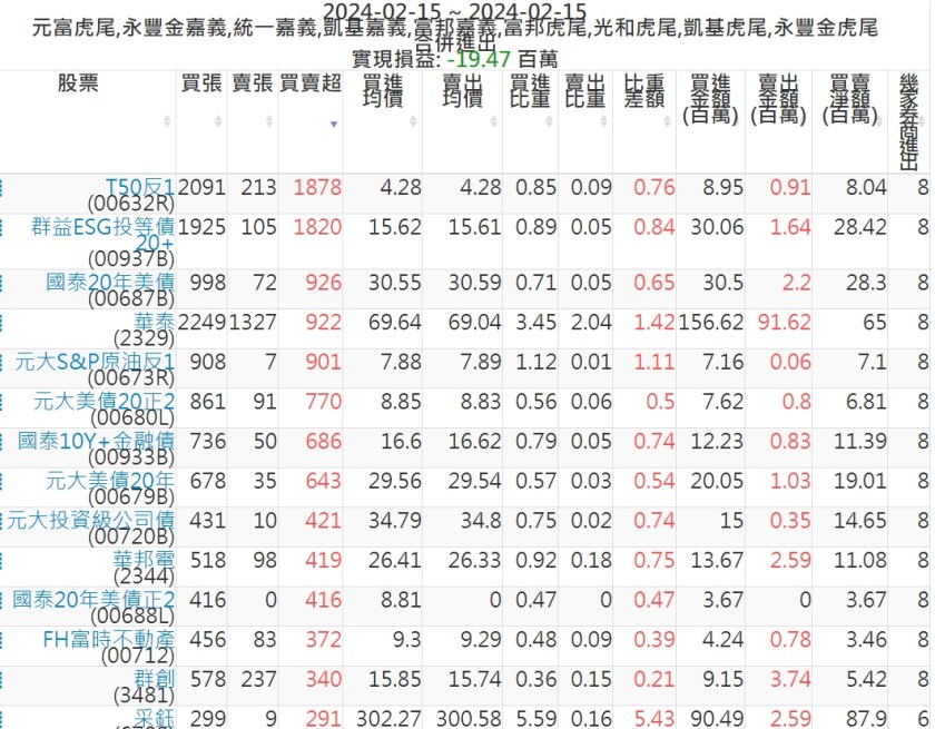 2024-0215主力買賣超個股 2024-02-15 股狗網小編 籌碼面每日資訊 發表留言 可參考下文 『如何查詢當沖、隔日沖分公司券商買賣』 主力當沖券商: 『元富虎尾』,『永豐金嘉義』,『統一嘉義』,『凱基嘉義』,『富邦嘉義』,『富邦虎尾』,『光和虎尾』,『凱基虎尾』,『永豐金虎尾』。 『當沖標的』 『買超股票』 『賣超股票』 免責宣言 本網站文章所提供資訊僅供參考,並無任何推介買賣之意,投資人應自行承擔交易風險。 分享此文: 按一下即可分享至 X(在新視窗中開啟) X 按一下以分享至 Facebook(在新視窗中開啟) Facebook 喜歡 正在載入...