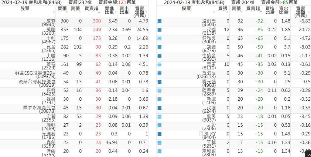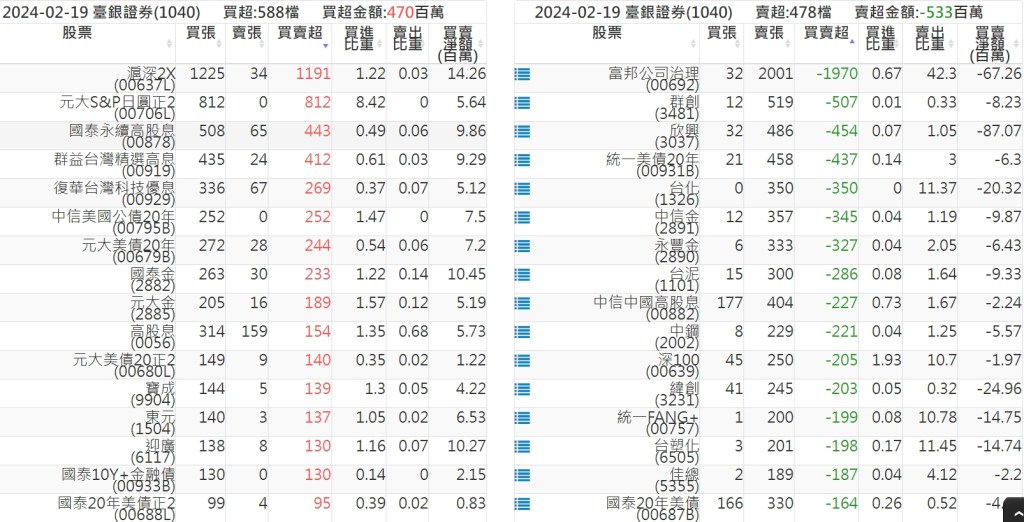 2024-0219關鍵券商買賣超 2024-02-19 股狗網小編 籌碼面每日資訊 發表留言 關鍵券商買賣超: 臺銀證券(1040): 台灣摩根士丹利(1470): 凱基台北(9268): 凱基信義(9216): 元大土城永寧(9875): 康和永和(845B) : 富邦建國(9658): 免責宣言 本網站文章所提供資訊僅供參考,並無任何推介買賣之意,投資人應自行承擔交易風險。 分享此文: 按一下即可分享至 X(在新視窗中開啟) X 按一下以分享至 Facebook(在新視窗中開啟) Facebook 喜歡 正在載入...