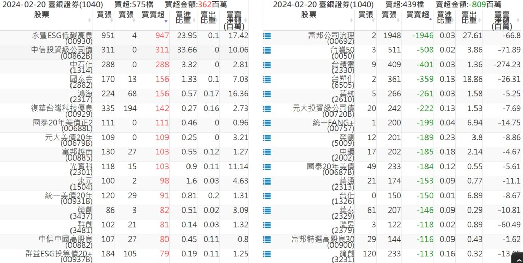 2024-0220關鍵券商買賣超 2024-02-20 股狗網小編 籌碼面每日資訊 發表留言 關鍵券商買賣超: 臺銀證券(1040): 台灣摩根士丹利(1470): 凱基台北(9268): 凱基信義(9216): 元大土城永寧(9875): 康和永和(845B) : 富邦建國(9658): 免責宣言 本網站文章所提供資訊僅供參考,並無任何推介買賣之意,投資人應自行承擔交易風險。 分享此文: 分享到 X(在新視窗中開啟) X 分享到 Facebook(在新視窗中開啟) Facebook 喜歡 正在載入...
