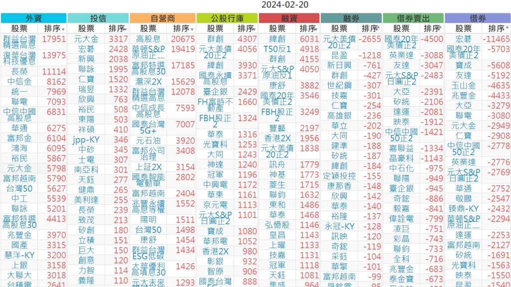 2024-0220上市【外資、投信】買賣超個股 2024-02-21 股狗網小編 投資誌-大盤 發表留言 上市:【外資、投信】買超(依金額) (單位:百萬) 上市:【外資、投信】賣超(依金額) (單位:百萬) 上市:【外資、投信】買超(依張數) (單位:張數) 上市:【外資、投信】賣超(依張數) (單位:張數) 免責宣言 本網站文章所提供資訊僅供參考,並無任何推介買賣之意,投資人應自行承擔交易風險。 分享此文: 分享到 X(在新視窗中開啟) X 分享到 Facebook(在新視窗中開啟) Facebook 喜歡 正在載入...