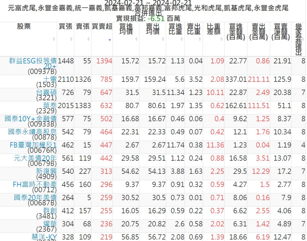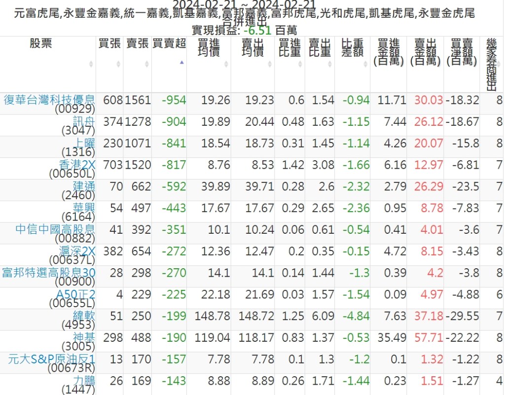 2024-0221主力買賣超個股 2024-02-21 股狗網小編 籌碼面每日資訊 發表留言 可參考下文 『如何查詢當沖、隔日沖分公司券商買賣』 主力當沖券商: 『元富虎尾』,『永豐金嘉義』,『統一嘉義』,『凱基嘉義』,『富邦嘉義』,『富邦虎尾』,『光和虎尾』,『凱基虎尾』,『永豐金虎尾』。 『當沖標的』 『買超股票』 『賣超股票』 免責宣言 本網站文章所提供資訊僅供參考,並無任何推介買賣之意,投資人應自行承擔交易風險。 分享此文: 分享到 X(在新視窗中開啟) X 分享到 Facebook(在新視窗中開啟) Facebook 喜歡 正在載入...