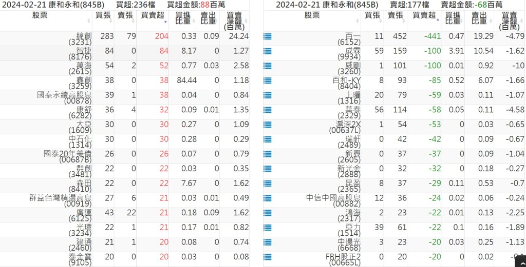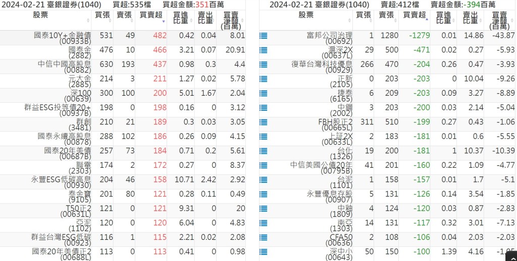 2024-0221關鍵券商買賣超 2024-02-21 股狗網小編 籌碼面每日資訊 發表留言 關鍵券商買賣超: 臺銀證券(1040): 台灣摩根士丹利(1470): 凱基台北(9268): 凱基信義(9216): 元大土城永寧(9875): 康和永和(845B) : 富邦建國(9658): 免責宣言 本網站文章所提供資訊僅供參考,並無任何推介買賣之意,投資人應自行承擔交易風險。 分享此文: 分享到 X(在新視窗中開啟) X 分享到 Facebook(在新視窗中開啟) Facebook 喜歡 正在載入...