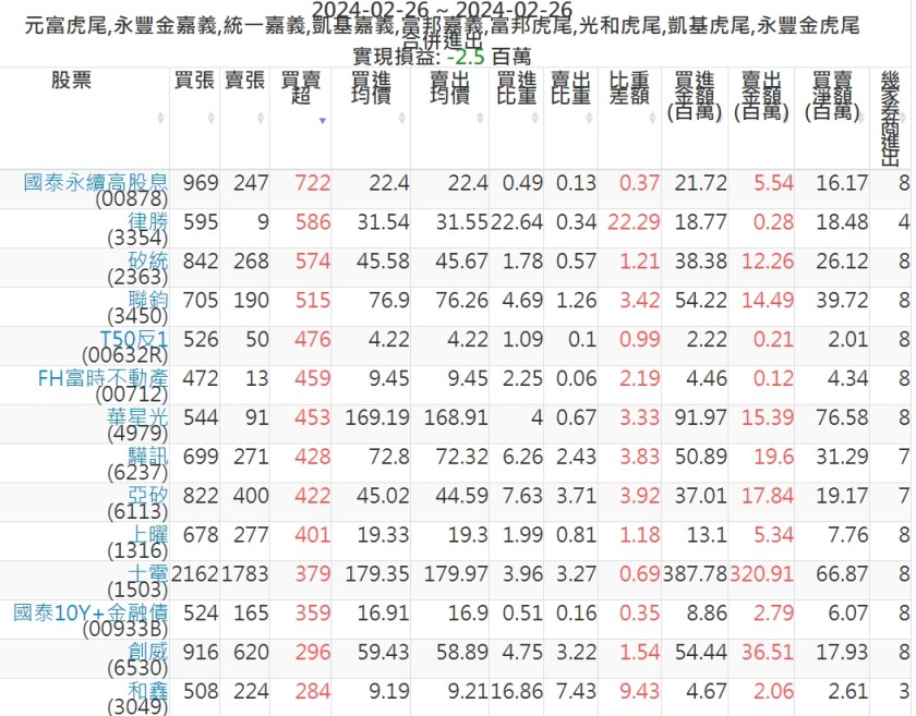 2024-0226主力買賣超個股 2024-02-26 股狗網小編 籌碼面每日資訊 發表留言 可參考下文 『如何查詢當沖、隔日沖分公司券商買賣』 主力當沖券商: 『元富虎尾』,『永豐金嘉義』,『統一嘉義』,『凱基嘉義』,『富邦嘉義』,『富邦虎尾』,『光和虎尾』,『凱基虎尾』,『永豐金虎尾』。 『當沖標的』 『買超股票』 『賣超股票』 免責宣言 本網站文章所提供資訊僅供參考,並無任何推介買賣之意,投資人應自行承擔交易風險。 分享此文: 分享到 X(在新視窗中開啟) X 分享到 Facebook(在新視窗中開啟) Facebook 喜歡 正在載入...