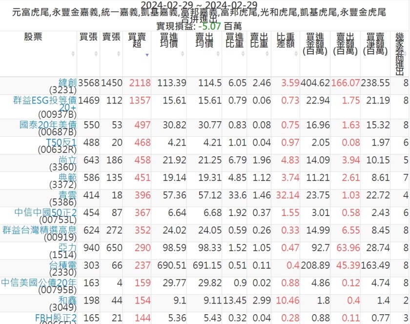 2024-0229主力買賣超個股 2024-02-29 股狗網小編 籌碼面每日資訊 發表留言 可參考下文 『如何查詢當沖、隔日沖分公司券商買賣』 主力當沖券商: 『元富虎尾』,『永豐金嘉義』,『統一嘉義』,『凱基嘉義』,『富邦嘉義』,『富邦虎尾』,『光和虎尾』,『凱基虎尾』,『永豐金虎尾』。 『當沖標的』 『買超股票』 『賣超股票』 免責宣言 本網站文章所提供資訊僅供參考,並無任何推介買賣之意,投資人應自行承擔交易風險。 分享此文: 分享到 X(在新視窗中開啟) X 分享到 Facebook(在新視窗中開啟) Facebook 喜歡 正在載入...