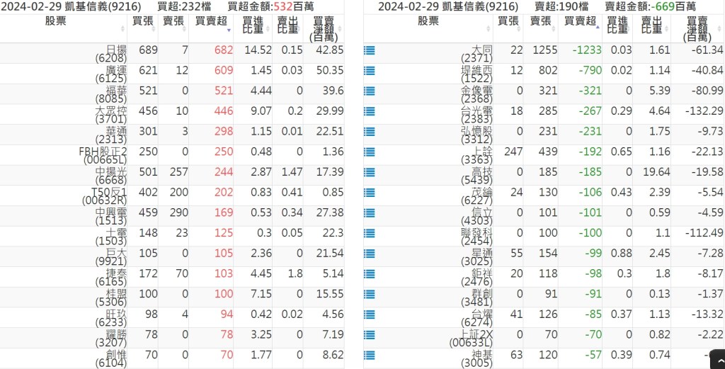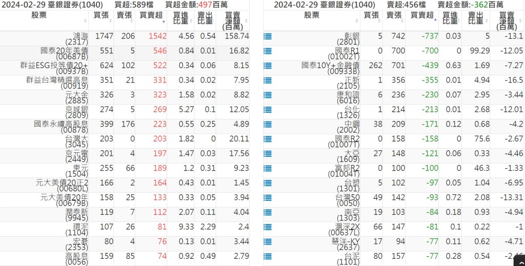 2024-0229關鍵券商買賣超 2024-02-29 股狗網小編 籌碼面每日資訊 發表留言 關鍵券商買賣超: 臺銀證券(1040): 台灣摩根士丹利(1470): 凱基台北(9268): 凱基信義(9216): 元大土城永寧(9875): 康和永和(845B) : 富邦建國(9658): 免責宣言 本網站文章所提供資訊僅供參考,並無任何推介買賣之意,投資人應自行承擔交易風險。 分享此文: 分享到 X(在新視窗中開啟) X 分享到 Facebook(在新視窗中開啟) Facebook 喜歡 正在載入...
