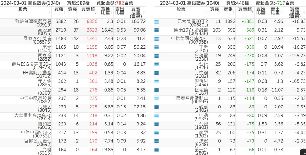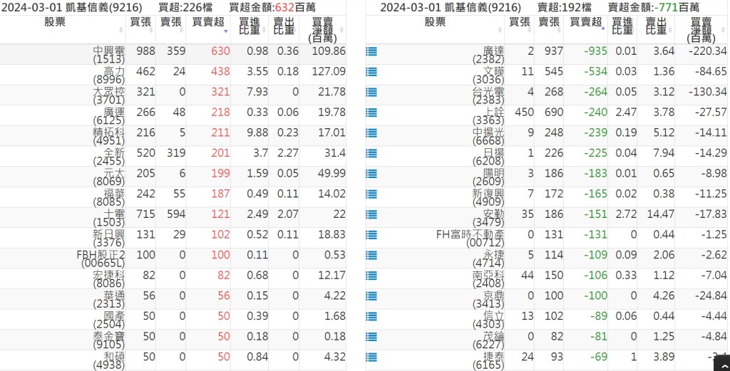 2024-0301關鍵券商買賣超 2024-03-01 股狗網小編 籌碼面每日資訊 發表留言 關鍵券商買賣超: 臺銀證券(1040): 台灣摩根士丹利(1470): 凱基台北(9268): 凱基信義(9216): 元大土城永寧(9875): 康和永和(845B) : 富邦建國(9658): 免責宣言 本網站文章所提供資訊僅供參考,並無任何推介買賣之意,投資人應自行承擔交易風險。 分享此文: 分享到 X(在新視窗中開啟) X 分享到 Facebook(在新視窗中開啟) Facebook 喜歡 正在載入...
