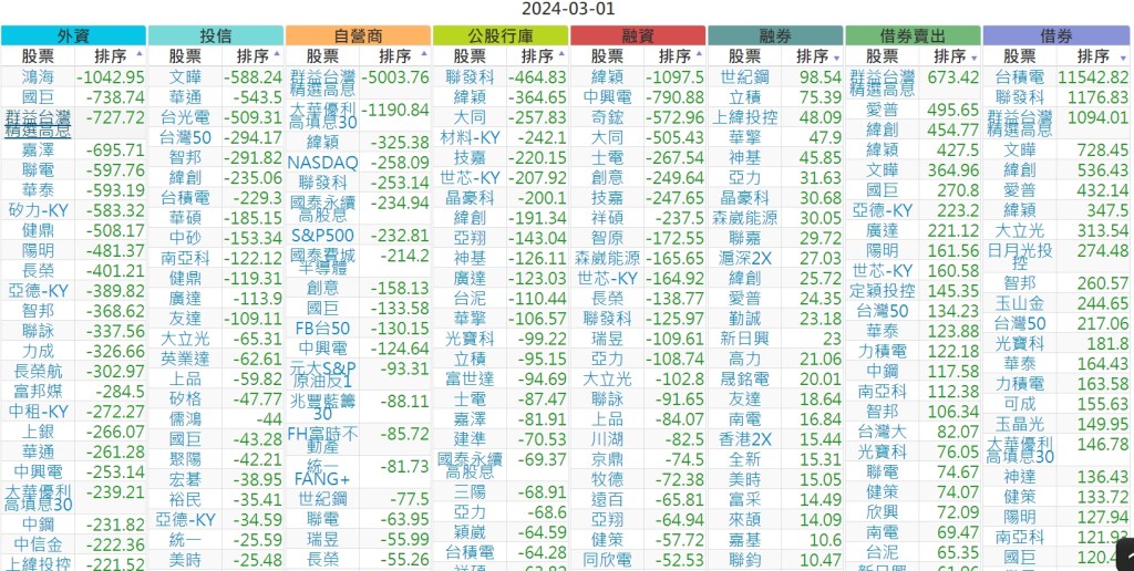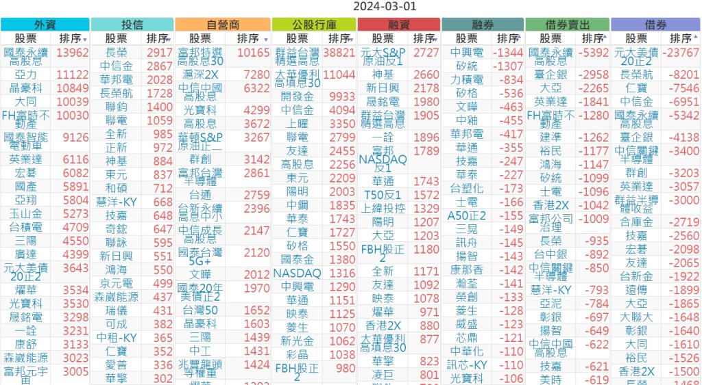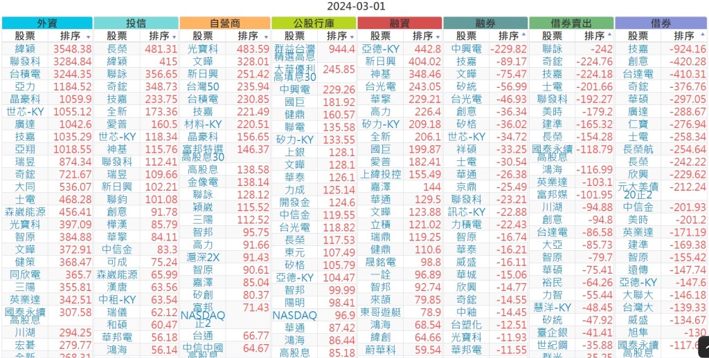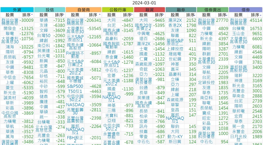 2024-0301上市【外資、投信】買賣超個股 2024-03-02 股狗網小編 投資誌-大盤 發表留言 上市:【外資、投信】買超(依金額) (單位:百萬) 上市:【外資、投信】賣超(依金額) (單位:百萬) 上市:【外資、投信】買超(依張數) (單位:張數) 上市:【外資、投信】賣超(依張數) (單位:張數) 免責宣言 本網站文章所提供資訊僅供參考,並無任何推介買賣之意,投資人應自行承擔交易風險。 分享此文: 分享到 X(在新視窗中開啟) X 分享到 Facebook(在新視窗中開啟) Facebook 喜歡 正在載入...