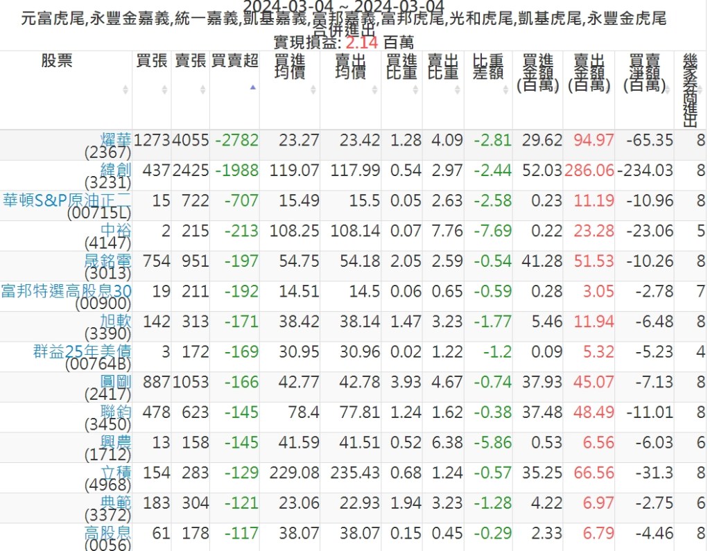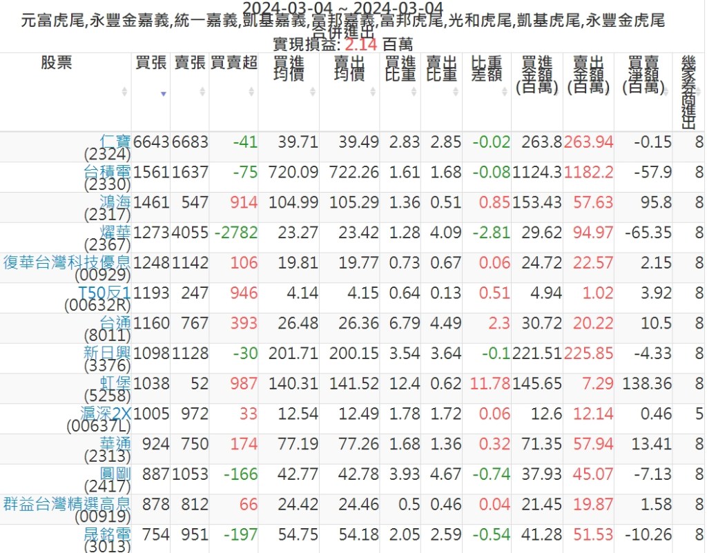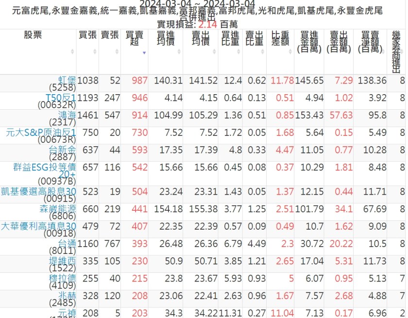 2024-0304主力買賣超個股 2024-03-04 股狗網小編 籌碼面每日資訊 發表留言 可參考下文 『如何查詢當沖、隔日沖分公司券商買賣』 主力當沖券商: 『元富虎尾』,『永豐金嘉義』,『統一嘉義』,『凱基嘉義』,『富邦嘉義』,『富邦虎尾』,『光和虎尾』,『凱基虎尾』,『永豐金虎尾』。 『當沖標的』 『買超股票』 『賣超股票』 免責宣言 本網站文章所提供資訊僅供參考,並無任何推介買賣之意,投資人應自行承擔交易風險。 分享此文: 分享到 X(在新視窗中開啟) X 分享到 Facebook(在新視窗中開啟) Facebook 喜歡 正在載入...