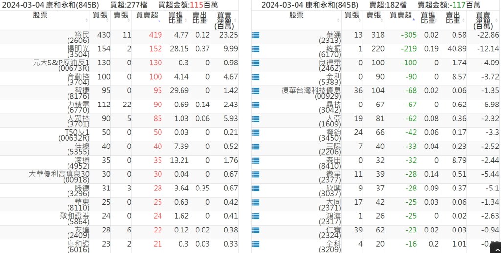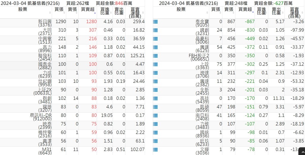 2024-0304關鍵券商買賣超 2024-03-04 股狗網小編 籌碼面每日資訊 發表留言 關鍵券商買賣超: 臺銀證券(1040): 台灣摩根士丹利(1470): 凱基台北(9268): 凱基信義(9216): 元大土城永寧(9875): 康和永和(845B) : 富邦建國(9658): 免責宣言 本網站文章所提供資訊僅供參考,並無任何推介買賣之意,投資人應自行承擔交易風險。 分享此文: 分享到 X(在新視窗中開啟) X 分享到 Facebook(在新視窗中開啟) Facebook 喜歡 正在載入...