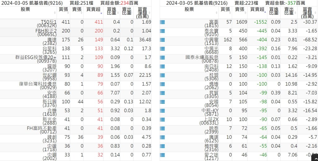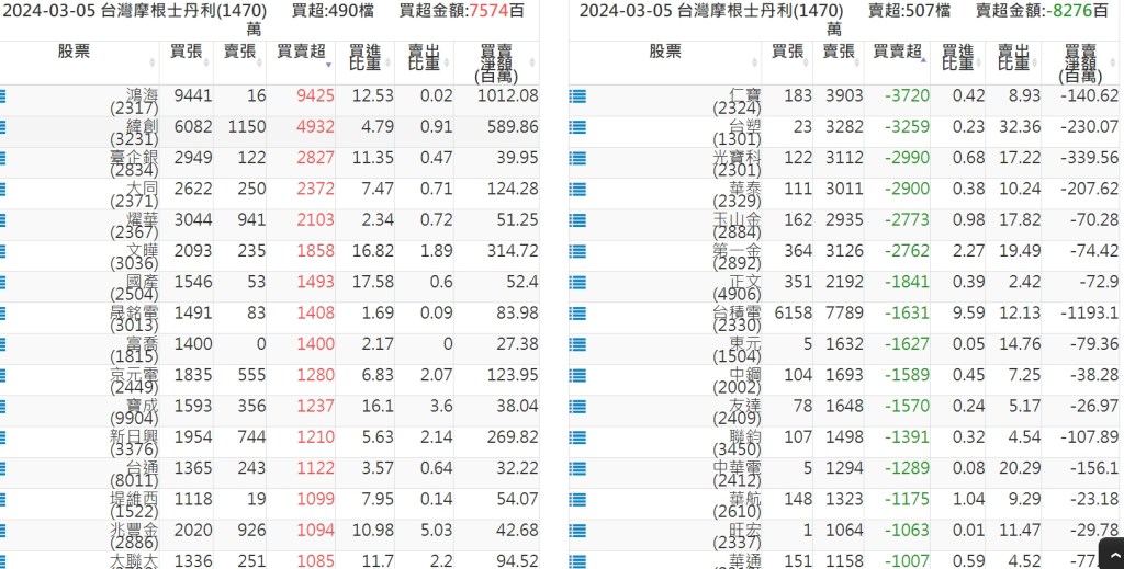 2024-0305關鍵券商買賣超 2024-03-05 股狗網小編 籌碼面每日資訊 發表留言 關鍵券商買賣超: 臺銀證券(1040): 台灣摩根士丹利(1470): 凱基台北(9268): 凱基信義(9216): 元大土城永寧(9875): 康和永和(845B) : 富邦建國(9658): 免責宣言 本網站文章所提供資訊僅供參考,並無任何推介買賣之意,投資人應自行承擔交易風險。 分享此文: 分享到 X(在新視窗中開啟) X 分享到 Facebook(在新視窗中開啟) Facebook 喜歡 正在載入...
