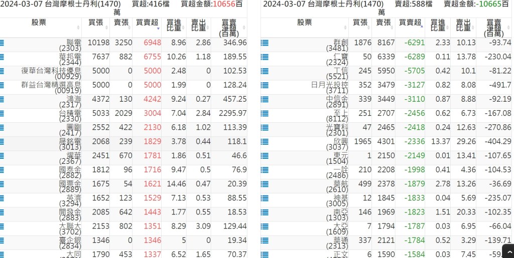 2024-0307關鍵券商買賣超 2024-03-07 股狗網小編 籌碼面每日資訊 發表留言 關鍵券商買賣超: 臺銀證券(1040): 台灣摩根士丹利(1470): 凱基台北(9268): 凱基信義(9216): 元大土城永寧(9875): 康和永和(845B) : 富邦建國(9658): 免責宣言 本網站文章所提供資訊僅供參考,並無任何推介買賣之意,投資人應自行承擔交易風險。 分享此文: 分享到 X(在新視窗中開啟) X 分享到 Facebook(在新視窗中開啟) Facebook 喜歡 正在載入...