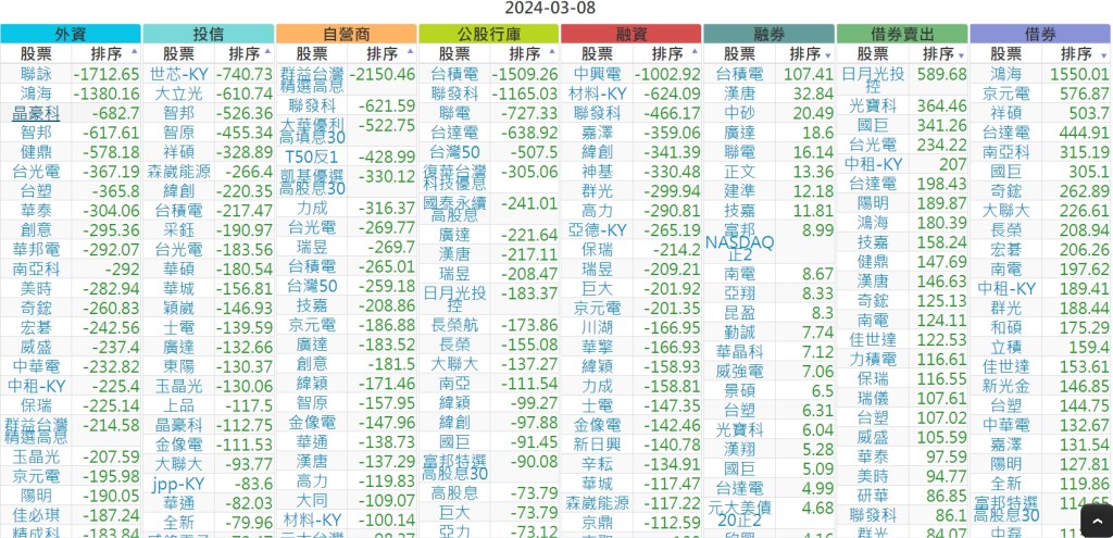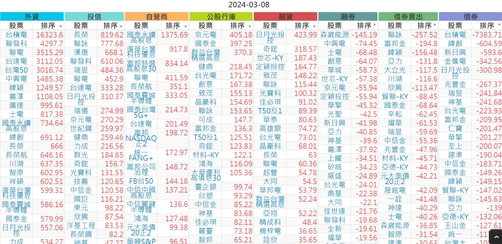 2024-0308上市【外資、投信】買賣超個股 2024-03-09 股狗網小編 投資誌-大盤 發表留言 上市:【外資、投信】買超(依金額) (單位:百萬) 上市:【外資、投信】賣超(依金額) (單位:百萬) 上市:【外資、投信】買超(依張數) (單位:張數) 上市:【外資、投信】賣超(依張數) (單位:張數) 免責宣言 本網站文章所提供資訊僅供參考,並無任何推介買賣之意,投資人應自行承擔交易風險。 分享此文: 分享到 X(在新視窗中開啟) X 分享到 Facebook(在新視窗中開啟) Facebook 喜歡 正在載入...