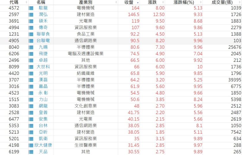 2024-0311日新高爆量上漲股 2024-03-12 股狗網小編 選股條件 發表留言 利用股狗選股的選股條件可以【挑選突破20日新高,爆量上漲起漲點股票】 1.股狗選股 https://www.stockdog.com.tw 2.選股條件: a.收盤價創20日新高 b.當日漲幅 > 2% C.成交量大於5日均量2倍 免責宣言 本網站文章所提供資訊僅供參考,並無任何推介買賣之意,投資人應自行承擔交易風險。 分享此文: 分享到 X(在新視窗中開啟) X 分享到 Facebook(在新視窗中開啟) Facebook 喜歡 正在載入...