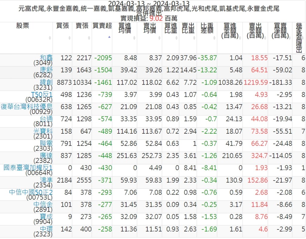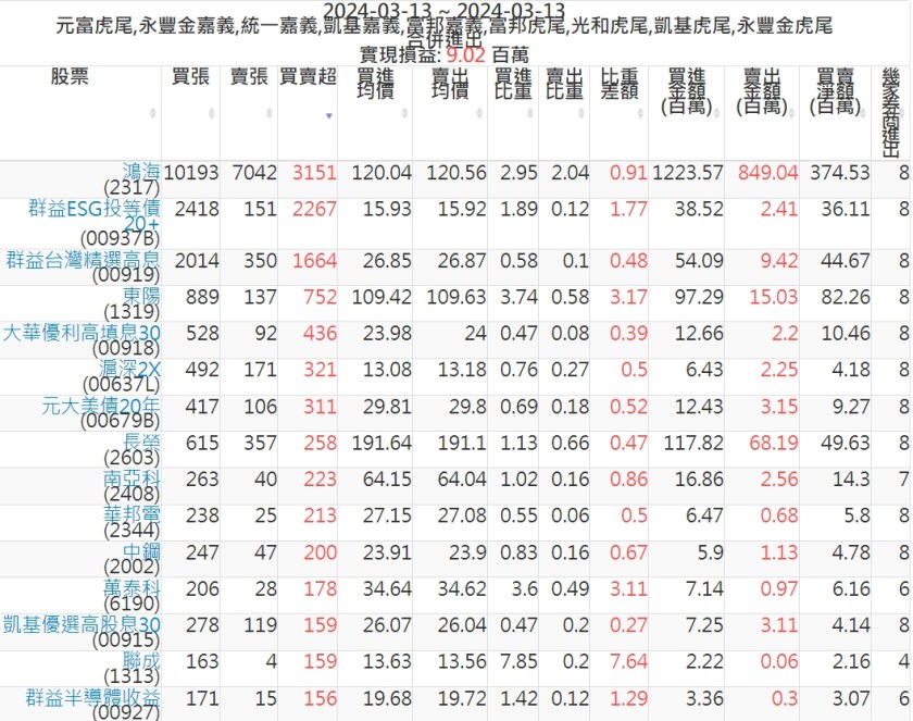 2024-0313主力買賣超個股 2024-03-13 股狗網小編 籌碼面每日資訊 發表留言 可參考下文 『如何查詢當沖、隔日沖分公司券商買賣』 主力當沖券商: 『元富虎尾』,『永豐金嘉義』,『統一嘉義』,『凱基嘉義』,『富邦嘉義』,『富邦虎尾』,『光和虎尾』,『凱基虎尾』,『永豐金虎尾』。 『當沖標的』 『買超股票』 『賣超股票』 免責宣言 本網站文章所提供資訊僅供參考,並無任何推介買賣之意,投資人應自行承擔交易風險。 分享此文: 分享到 X(在新視窗中開啟) X 分享到 Facebook(在新視窗中開啟) Facebook 喜歡 正在載入...