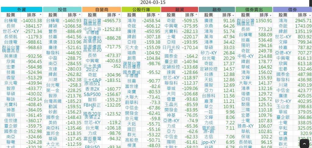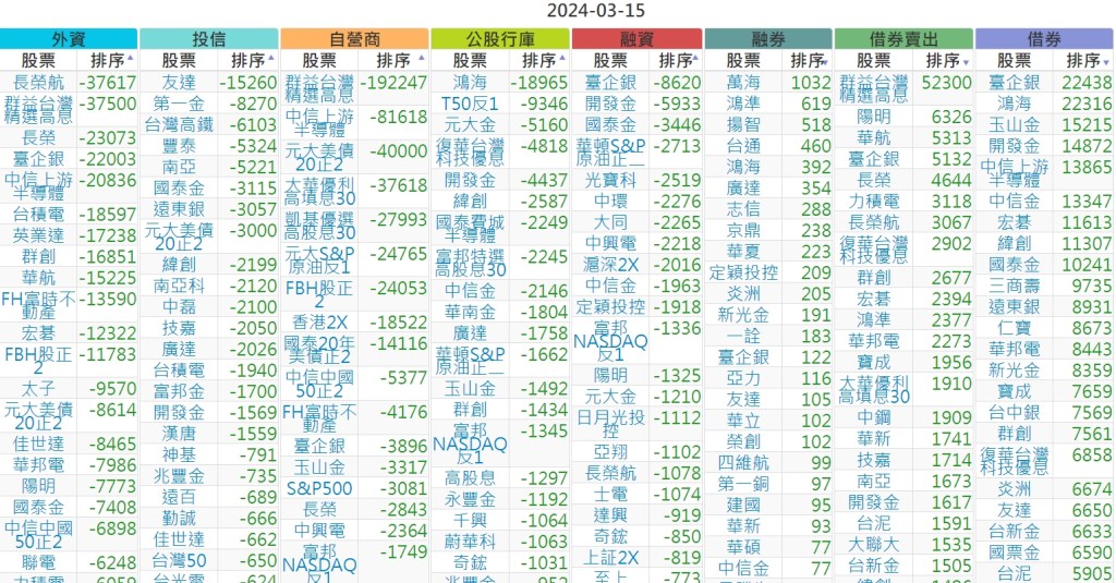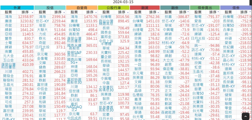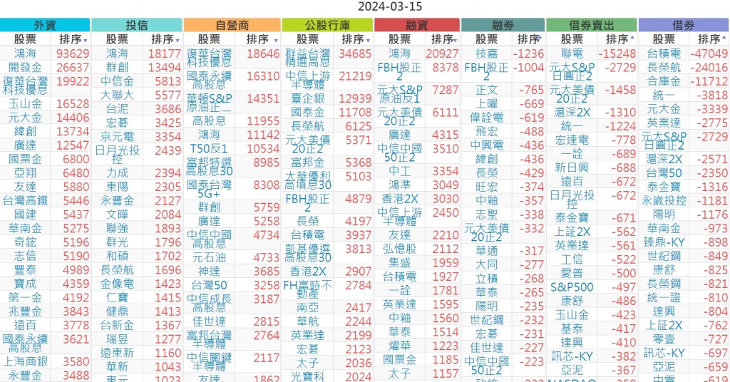 2024-0315上市【外資、投信】買賣超個股 2024-03-16 股狗網小編 投資誌-大盤 發表留言 上市:【外資、投信】買超(依金額) (單位:百萬) 上市:【外資、投信】賣超(依金額) (單位:百萬) 上市:【外資、投信】買超(依張數) (單位:張數) 上市:【外資、投信】賣超(依張數) (單位:張數) 免責宣言 本網站文章所提供資訊僅供參考,並無任何推介買賣之意,投資人應自行承擔交易風險。 分享此文: 分享到 X(在新視窗中開啟) X 分享到 Facebook(在新視窗中開啟) Facebook 喜歡 正在載入...