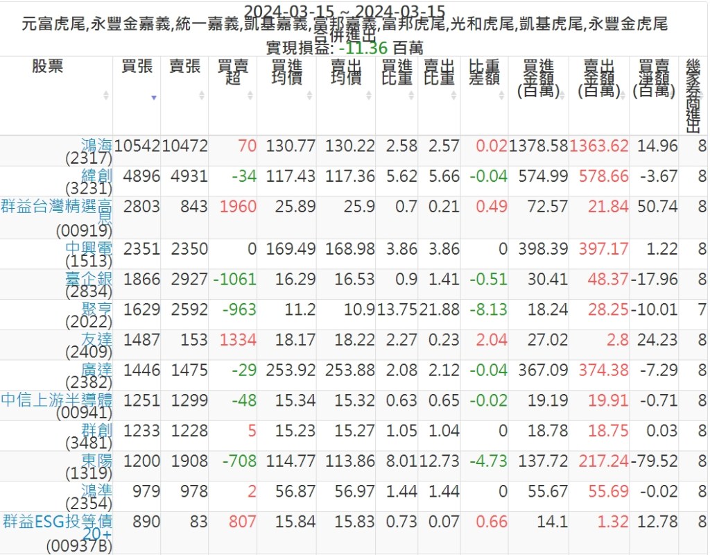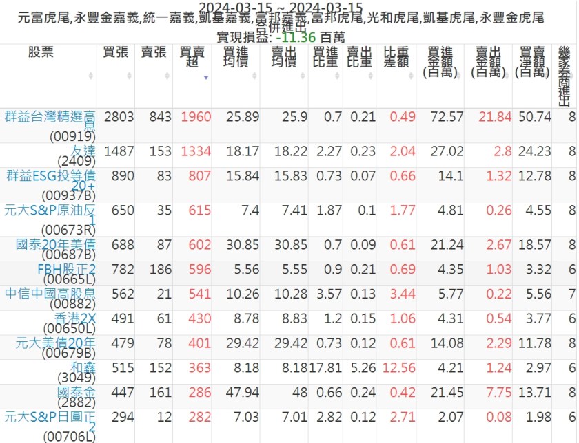 2024-0315主力買賣超個股 2024-03-16 股狗網小編 籌碼面每日資訊 發表留言 可參考下文 『如何查詢當沖、隔日沖分公司券商買賣』 主力當沖券商: 『元富虎尾』,『永豐金嘉義』,『統一嘉義』,『凱基嘉義』,『富邦嘉義』,『富邦虎尾』,『光和虎尾』,『凱基虎尾』,『永豐金虎尾』。 『當沖標的』 『買超股票』 『賣超股票』 免責宣言 本網站文章所提供資訊僅供參考,並無任何推介買賣之意,投資人應自行承擔交易風險。 分享此文: 分享到 X(在新視窗中開啟) X 分享到 Facebook(在新視窗中開啟) Facebook 喜歡 正在載入...