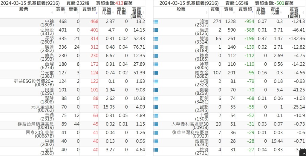 2024-0315關鍵券商買賣超 2024-03-16 股狗網小編 籌碼面每日資訊 發表留言 關鍵券商買賣超: 臺銀證券(1040): 台灣摩根士丹利(1470): 凱基台北(9268): 凱基信義(9216): 元大土城永寧(9875): 康和永和(845B) : 富邦建國(9658): 免責宣言 本網站文章所提供資訊僅供參考,並無任何推介買賣之意,投資人應自行承擔交易風險。 分享此文: 分享到 X(在新視窗中開啟) X 分享到 Facebook(在新視窗中開啟) Facebook 喜歡 正在載入...
