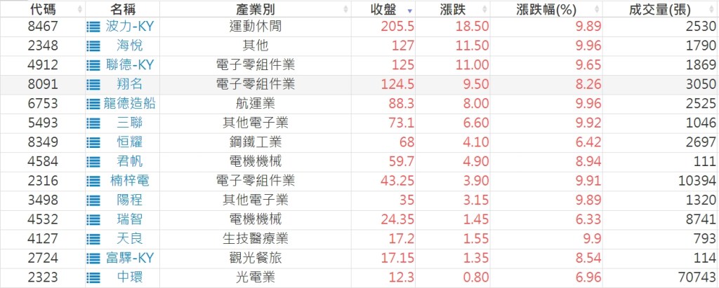 2024-0318日新高爆量上漲股 2024-03-18 股狗網小編 選股條件 發表留言 利用股狗選股的選股條件可以【挑選突破20日新高,爆量上漲起漲點股票】 1.股狗選股 https://www.stockdog.com.tw 2.選股條件: a.收盤價創20日新高 b.當日漲幅 > 2% C.成交量大於5日均量2倍 免責宣言 本網站文章所提供資訊僅供參考,並無任何推介買賣之意,投資人應自行承擔交易風險。 分享此文: 分享到 X(在新視窗中開啟) X 分享到 Facebook(在新視窗中開啟) Facebook 喜歡 正在載入...