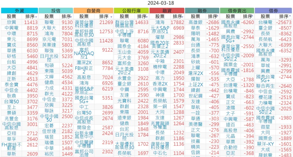 2024-0318上市【外資、投信】買賣超個股 2024-03-19 股狗網小編 投資誌-大盤 發表留言 上市:【外資、投信】買超(依金額) (單位:百萬) 上市:【外資、投信】賣超(依金額) (單位:百萬) 上市:【外資、投信】買超(依張數) (單位:張數) 上市:【外資、投信】賣超(依張數) (單位:張數) 免責宣言 本網站文章所提供資訊僅供參考,並無任何推介買賣之意,投資人應自行承擔交易風險。 分享此文: 分享到 X(在新視窗中開啟) X 分享到 Facebook(在新視窗中開啟) Facebook 喜歡 正在載入...