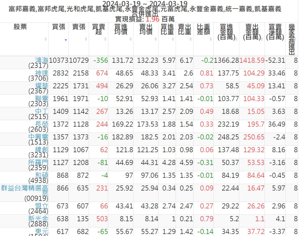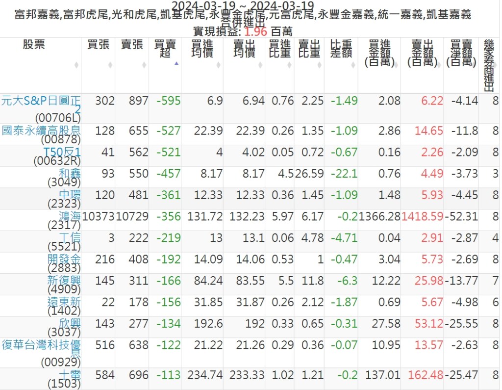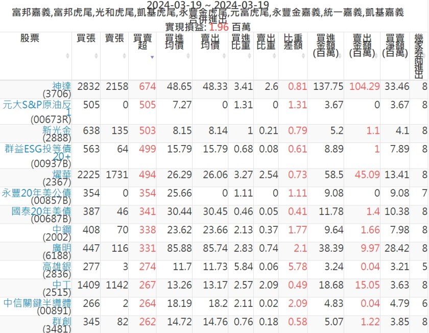 2024-0319主力買賣超個股 2024-03-19 股狗網小編 籌碼面每日資訊 發表留言 可參考下文 『如何查詢當沖、隔日沖分公司券商買賣』 主力當沖券商: 『元富虎尾』,『永豐金嘉義』,『統一嘉義』,『凱基嘉義』,『富邦嘉義』,『富邦虎尾』,『光和虎尾』,『凱基虎尾』,『永豐金虎尾』。 『當沖標的』 『買超股票』 『賣超股票』 免責宣言 本網站文章所提供資訊僅供參考,並無任何推介買賣之意,投資人應自行承擔交易風險。 分享此文: 分享到 X(在新視窗中開啟) X 分享到 Facebook(在新視窗中開啟) Facebook 喜歡 正在載入...