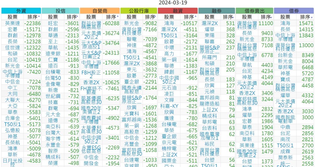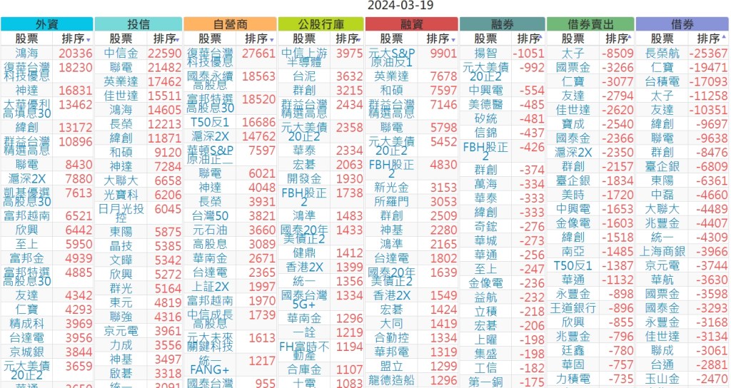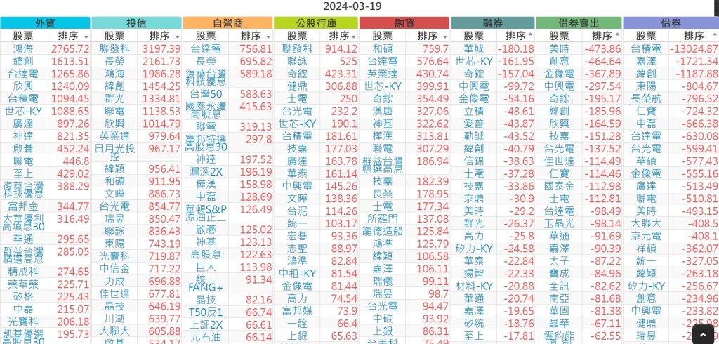 2024-0319上市【外資、投信】買賣超個股 2024-03-20 股狗網小編 投資誌-大盤 發表留言 上市:【外資、投信】買超(依金額) (單位:百萬) 上市:【外資、投信】賣超(依金額) (單位:百萬) 上市:【外資、投信】買超(依張數) (單位:張數) 上市:【外資、投信】賣超(依張數) (單位:張數) 免責宣言 本網站文章所提供資訊僅供參考,並無任何推介買賣之意,投資人應自行承擔交易風險。 分享此文: 分享到 X(在新視窗中開啟) X 分享到 Facebook(在新視窗中開啟) Facebook 喜歡 正在載入...