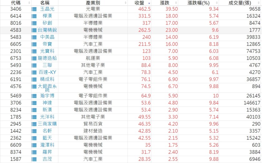 2024-0320日新高爆量上漲股 2024-03-20 股狗網小編 選股條件 發表留言 利用股狗選股的選股條件可以【挑選突破20日新高,爆量上漲起漲點股票】 1.股狗選股 https://www.stockdog.com.tw 2.選股條件: a.收盤價創20日新高 b.當日漲幅 > 2% C.成交量大於5日均量2倍 免責宣言 本網站文章所提供資訊僅供參考,並無任何推介買賣之意,投資人應自行承擔交易風險。 分享此文: 分享到 X(在新視窗中開啟) X 分享到 Facebook(在新視窗中開啟) Facebook 喜歡 正在載入...
