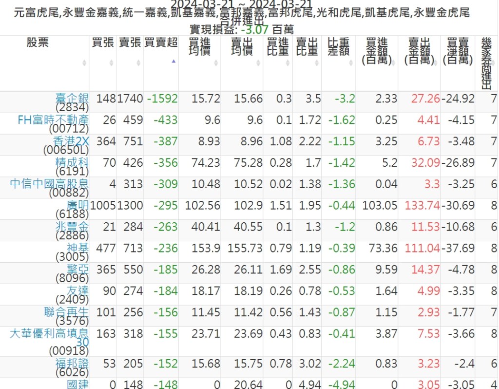 2024-0321主力買賣超個股 2024-03-21 股狗網小編 籌碼面每日資訊 發表留言 可參考下文 『如何查詢當沖、隔日沖分公司券商買賣』 主力當沖券商: 『元富虎尾』,『永豐金嘉義』,『統一嘉義』,『凱基嘉義』,『富邦嘉義』,『富邦虎尾』,『光和虎尾』,『凱基虎尾』,『永豐金虎尾』。 『當沖標的』 『買超股票』 『賣超股票』 免責宣言 本網站文章所提供資訊僅供參考,並無任何推介買賣之意,投資人應自行承擔交易風險。 分享此文: 分享到 X(在新視窗中開啟) X 分享到 Facebook(在新視窗中開啟) Facebook 喜歡 正在載入...