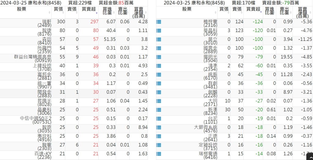 2024-0325關鍵券商買賣超 2024-03-25 股狗網小編 籌碼面每日資訊 發表留言 關鍵券商買賣超: 臺銀證券(1040): 台灣摩根士丹利(1470): 凱基台北(9268): 凱基信義(9216): 元大土城永寧(9875): 康和永和(845B) : 富邦建國(9658): 免責宣言 本網站文章所提供資訊僅供參考,並無任何推介買賣之意,投資人應自行承擔交易風險。 分享此文: 分享到 X(在新視窗中開啟) X 分享到 Facebook(在新視窗中開啟) Facebook 喜歡 正在載入...