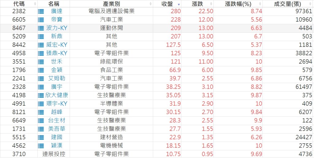 2024-0328日新高爆量上漲股 2024-03-28 股狗網小編 選股條件 發表留言 利用股狗選股的選股條件可以【挑選突破20日新高,爆量上漲起漲點股票】 1.股狗選股 https://www.stockdog.com.tw 2.選股條件: a.收盤價創20日新高 b.當日漲幅 > 2% C.成交量大於5日均量2倍 免責宣言 本網站文章所提供資訊僅供參考,並無任何推介買賣之意,投資人應自行承擔交易風險。 分享此文: 分享到 X(在新視窗中開啟) X 分享到 Facebook(在新視窗中開啟) Facebook 喜歡 正在載入...
