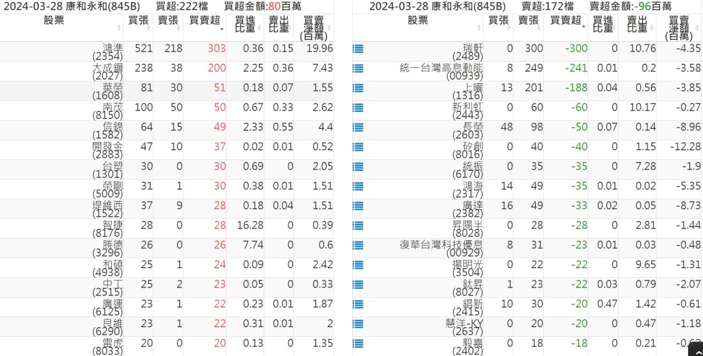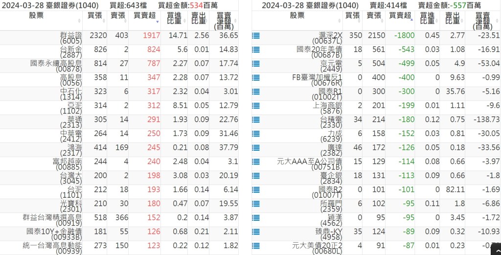 2024-0328關鍵券商買賣超 2024-03-28 股狗網小編 籌碼面每日資訊 發表留言 關鍵券商買賣超: 臺銀證券(1040): 台灣摩根士丹利(1470): 凱基台北(9268): 凱基信義(9216): 元大土城永寧(9875): 康和永和(845B) : 富邦建國(9658): 免責宣言 本網站文章所提供資訊僅供參考,並無任何推介買賣之意,投資人應自行承擔交易風險。 分享此文: 分享到 X(在新視窗中開啟) X 分享到 Facebook(在新視窗中開啟) Facebook 喜歡 正在載入...