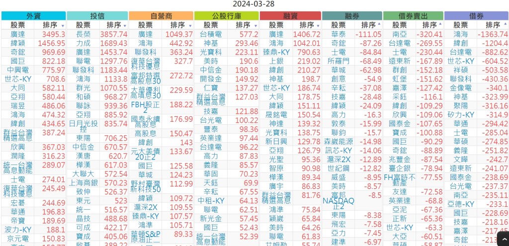 2024-0328上市【外資、投信】買賣超個股 2024-03-29 股狗網小編 投資誌-大盤 發表留言 上市:【外資、投信】買超(依金額) (單位:百萬) 上市:【外資、投信】賣超(依金額) (單位:百萬) 上市:【外資、投信】買超(依張數) (單位:張數) 上市:【外資、投信】賣超(依張數) (單位:張數) 免責宣言 本網站文章所提供資訊僅供參考,並無任何推介買賣之意,投資人應自行承擔交易風險。 分享此文: 分享到 X(在新視窗中開啟) X 分享到 Facebook(在新視窗中開啟) Facebook 喜歡 正在載入...