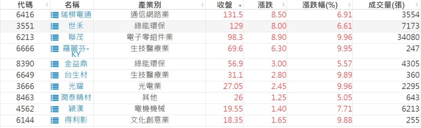 2024-0329日新高爆量上漲股 2024-03-29 股狗網小編 選股條件 發表留言 利用股狗選股的選股條件可以【挑選突破20日新高,爆量上漲起漲點股票】 1.股狗選股 https://www.stockdog.com.tw 2.選股條件: a.收盤價創20日新高 b.當日漲幅 > 2% C.成交量大於5日均量2倍 免責宣言 本網站文章所提供資訊僅供參考,並無任何推介買賣之意,投資人應自行承擔交易風險。 分享此文: 分享到 X(在新視窗中開啟) X 分享到 Facebook(在新視窗中開啟) Facebook 喜歡 正在載入...