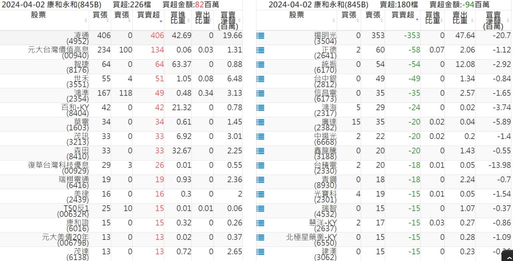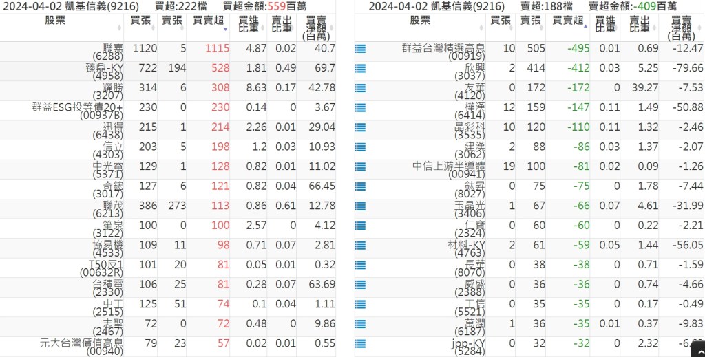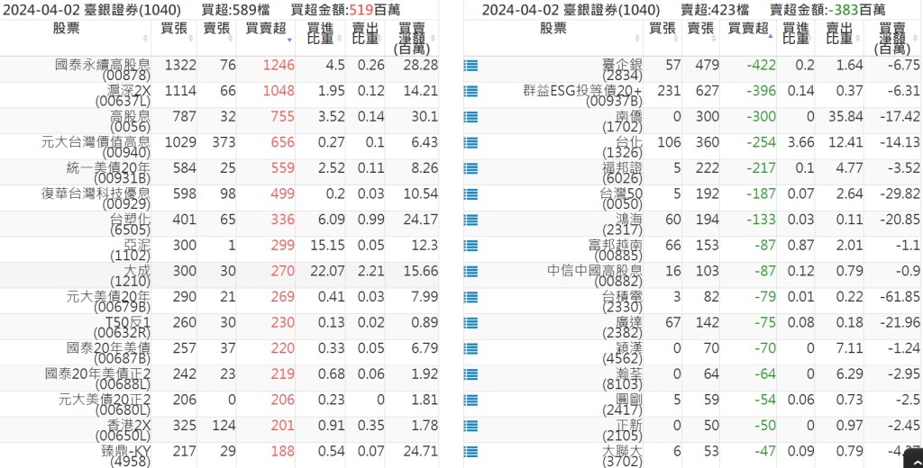 2024-0402關鍵券商買賣超 2024-04-02 股狗網小編 籌碼面每日資訊 發表留言 關鍵券商買賣超: 臺銀證券(1040): 台灣摩根士丹利(1470): 凱基台北(9268): 凱基信義(9216): 元大土城永寧(9875): 康和永和(845B) : 富邦建國(9658): 免責宣言 本網站文章所提供資訊僅供參考,並無任何推介買賣之意,投資人應自行承擔交易風險。 分享此文: 分享到 X(在新視窗中開啟) X 分享到 Facebook(在新視窗中開啟) Facebook 喜歡 正在載入...