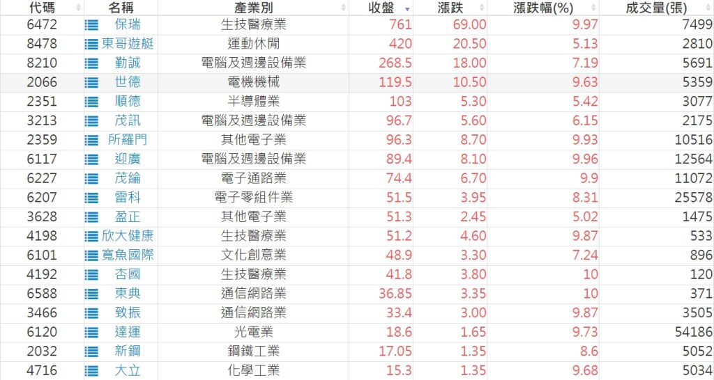 2024-0403日新高爆量上漲股 2024-04-03 股狗網小編 選股條件 發表留言 利用股狗選股的選股條件可以【挑選突破20日新高,爆量上漲起漲點股票】 1.股狗選股 https://www.stockdog.com.tw 2.選股條件: a.收盤價創20日新高 b.當日漲幅 > 2% C.成交量大於5日均量2倍 免責宣言 本網站文章所提供資訊僅供參考,並無任何推介買賣之意,投資人應自行承擔交易風險。 分享此文: 分享到 X(在新視窗中開啟) X 分享到 Facebook(在新視窗中開啟) Facebook 喜歡 正在載入...