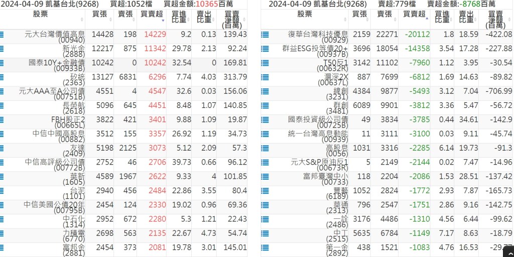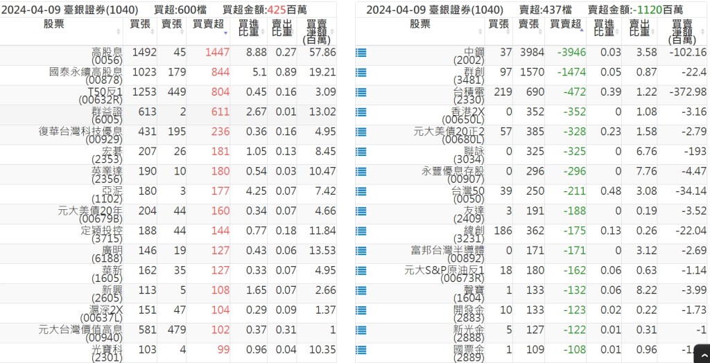 2024-0409關鍵券商買賣超 2024-04-09 股狗網小編 籌碼面每日資訊 發表留言 關鍵券商買賣超: 臺銀證券(1040): 台灣摩根士丹利(1470): 凱基台北(9268): 凱基信義(9216): 元大土城永寧(9875): 康和永和(845B) : 富邦建國(9658): 免責宣言 本網站文章所提供資訊僅供參考,並無任何推介買賣之意,投資人應自行承擔交易風險。 分享此文: 分享到 X(在新視窗中開啟) X 分享到 Facebook(在新視窗中開啟) Facebook 喜歡 正在載入...