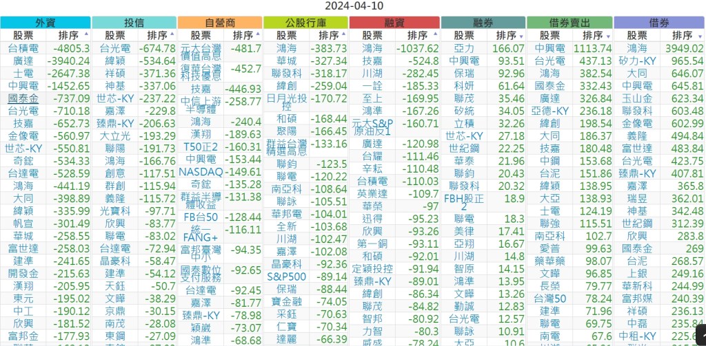 2024-0410上市【外資、投信】買賣超個股 2024-04-11 股狗網小編 投資誌-大盤 發表留言 上市:【外資、投信】買超(依金額) (單位:百萬) 上市:【外資、投信】賣超(依金額) (單位:百萬) 上市:【外資、投信】買超(依張數) (單位:張數) 上市:【外資、投信】賣超(依張數) (單位:張數) 免責宣言 本網站文章所提供資訊僅供參考,並無任何推介買賣之意,投資人應自行承擔交易風險。 分享此文: 分享到 X(在新視窗中開啟) X 分享到 Facebook(在新視窗中開啟) Facebook 喜歡 正在載入...