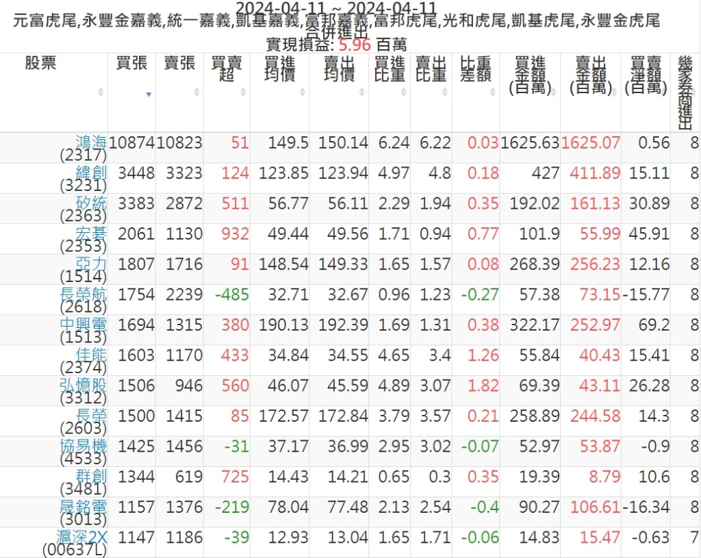 2024-0411主力買賣超個股 2024-04-11 股狗網小編 籌碼面每日資訊 發表留言 可參考下文 『如何查詢當沖、隔日沖分公司券商買賣』 主力當沖券商: 『元富虎尾』,『永豐金嘉義』,『統一嘉義』,『凱基嘉義』,『富邦嘉義』,『富邦虎尾』,『光和虎尾』,『凱基虎尾』,『永豐金虎尾』。 『當沖標的』 『買超股票』 『賣超股票』 免責宣言 本網站文章所提供資訊僅供參考,並無任何推介買賣之意,投資人應自行承擔交易風險。 分享此文: 按一下即可分享至 X(在新視窗中開啟) X 按一下以分享至 Facebook(在新視窗中開啟) Facebook 喜歡 正在載入...