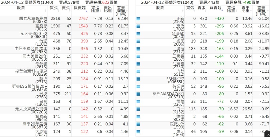 2024-0412關鍵券商買賣超 2024-04-12 股狗網小編 籌碼面每日資訊 發表留言 關鍵券商買賣超: 臺銀證券(1040): 台灣摩根士丹利(1470): 凱基台北(9268): 凱基信義(9216): 元大土城永寧(9875): 康和永和(845B) : 富邦建國(9658): 免責宣言 本網站文章所提供資訊僅供參考,並無任何推介買賣之意,投資人應自行承擔交易風險。 分享此文: 按一下即可分享至 X(在新視窗中開啟) X 按一下以分享至 Facebook(在新視窗中開啟) Facebook 喜歡 正在載入...