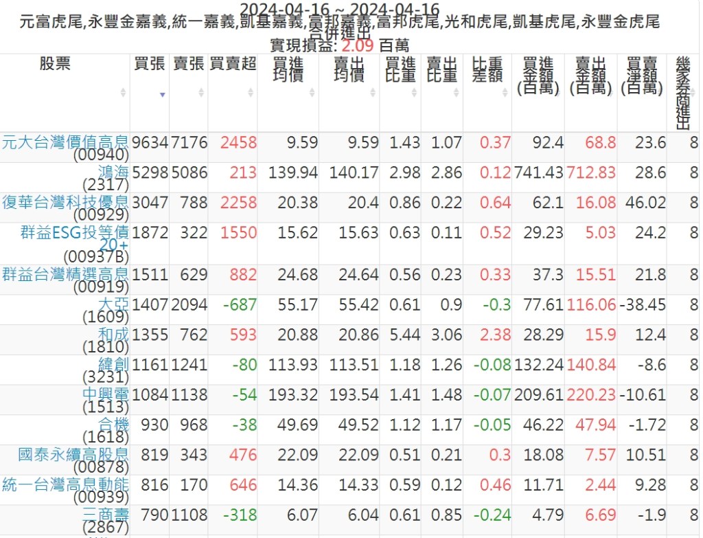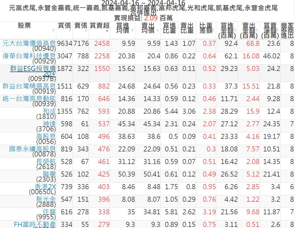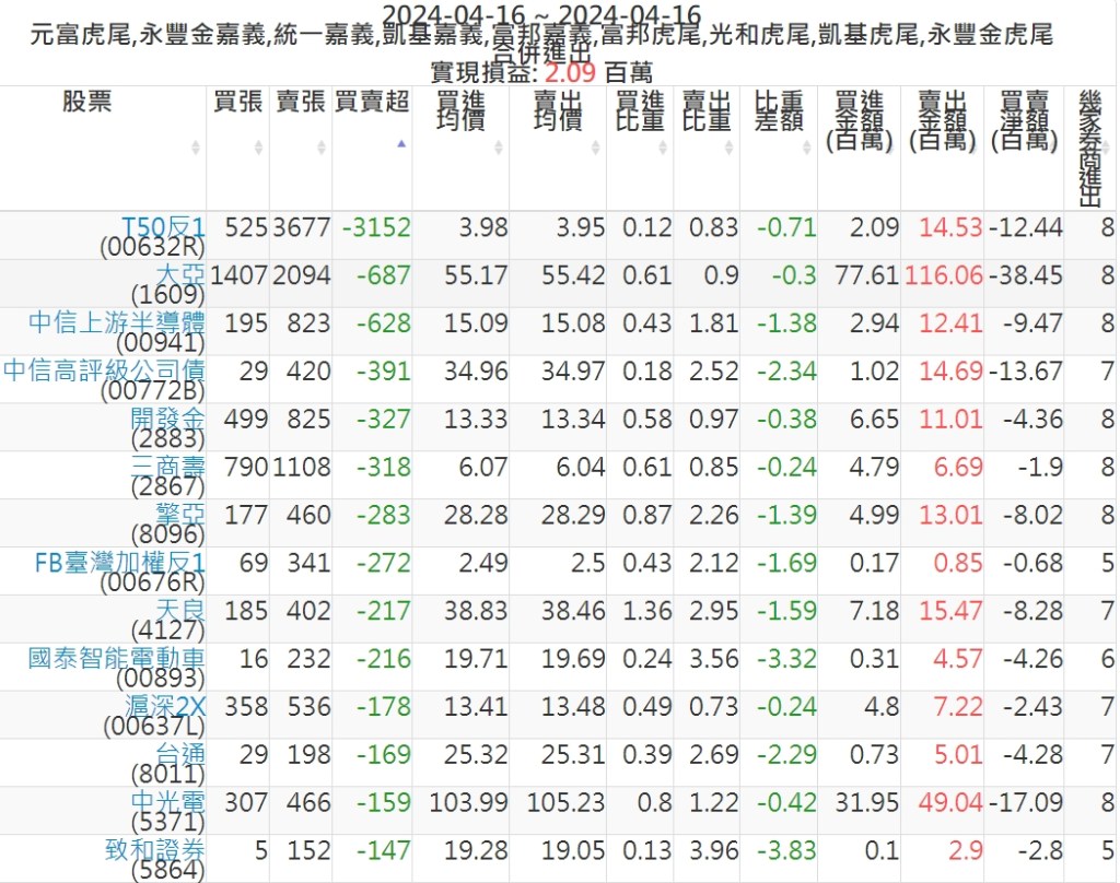 2024-0416主力買賣超個股 2024-04-16 股狗網小編 籌碼面每日資訊 發表留言 可參考下文 『如何查詢當沖、隔日沖分公司券商買賣』 主力當沖券商: 『元富虎尾』,『永豐金嘉義』,『統一嘉義』,『凱基嘉義』,『富邦嘉義』,『富邦虎尾』,『光和虎尾』,『凱基虎尾』,『永豐金虎尾』。 『當沖標的』 『買超股票』 『賣超股票』 免責宣言 本網站文章所提供資訊僅供參考,並無任何推介買賣之意,投資人應自行承擔交易風險。 分享此文: 按一下即可分享至 X(在新視窗中開啟) X 按一下以分享至 Facebook(在新視窗中開啟) Facebook 喜歡 正在載入...