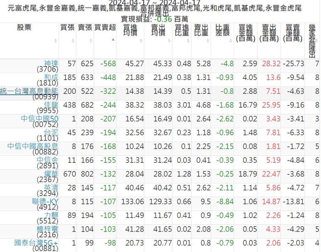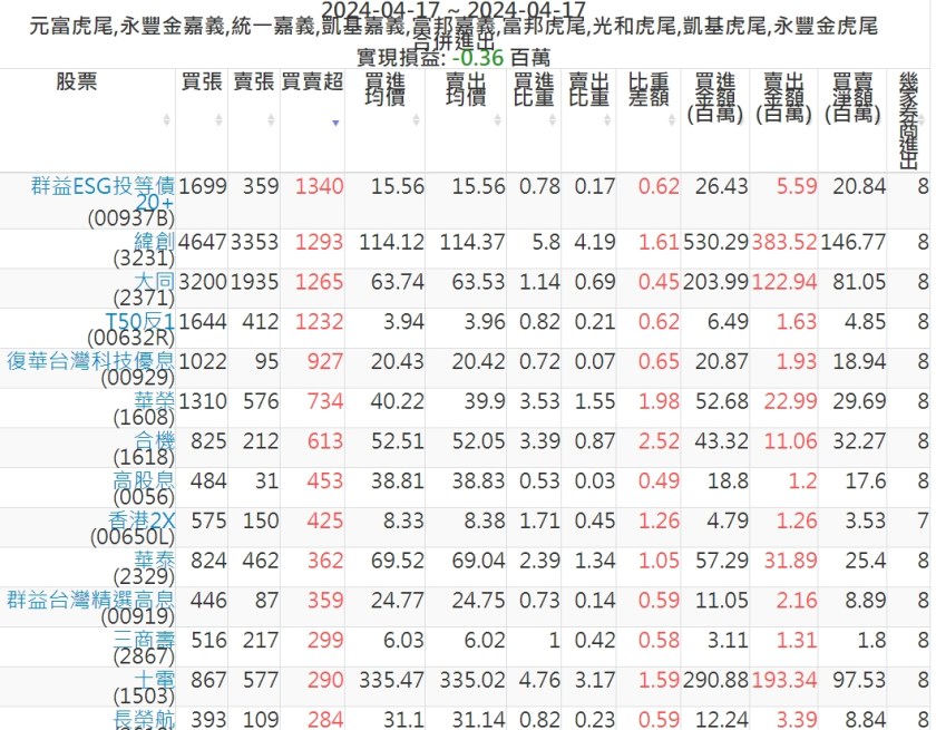 2024-0417主力買賣超個股 2024-04-17 股狗網小編 籌碼面每日資訊 發表留言 可參考下文 『如何查詢當沖、隔日沖分公司券商買賣』 主力當沖券商: 『元富虎尾』,『永豐金嘉義』,『統一嘉義』,『凱基嘉義』,『富邦嘉義』,『富邦虎尾』,『光和虎尾』,『凱基虎尾』,『永豐金虎尾』。 『當沖標的』 『買超股票』 『賣超股票』 免責宣言 本網站文章所提供資訊僅供參考,並無任何推介買賣之意,投資人應自行承擔交易風險。 分享此文: 分享到 X(在新視窗中開啟) X 分享到 Facebook(在新視窗中開啟) Facebook 喜歡 正在載入...