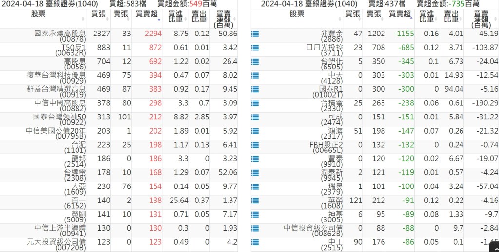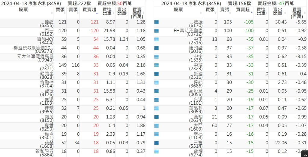 2024-0418關鍵券商買賣超 2024-04-18 股狗網小編 籌碼面每日資訊 發表留言 關鍵券商買賣超: 臺銀證券(1040): 台灣摩根士丹利(1470): 凱基台北(9268): 凱基信義(9216): 元大土城永寧(9875): 康和永和(845B) : 富邦建國(9658): 免責宣言 本網站文章所提供資訊僅供參考,並無任何推介買賣之意,投資人應自行承擔交易風險。 分享此文: 分享到 X(在新視窗中開啟) X 分享到 Facebook(在新視窗中開啟) Facebook 喜歡 正在載入...