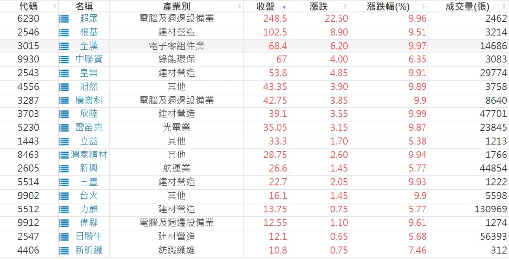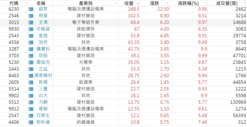 2024-0419日新高爆量上漲股 2024-04-19 股狗網小編 選股條件 發表留言 利用股狗選股的選股條件可以【挑選突破20日新高,爆量上漲起漲點股票】 1.股狗選股 https://www.stockdog.com.tw 2.選股條件: a.收盤價創20日新高 b.當日漲幅 > 2% C.成交量大於5日均量2倍 免責宣言 本網站文章所提供資訊僅供參考,並無任何推介買賣之意,投資人應自行承擔交易風險。 分享此文: 分享到 X(在新視窗中開啟) X 分享到 Facebook(在新視窗中開啟) Facebook 喜歡 正在載入...
